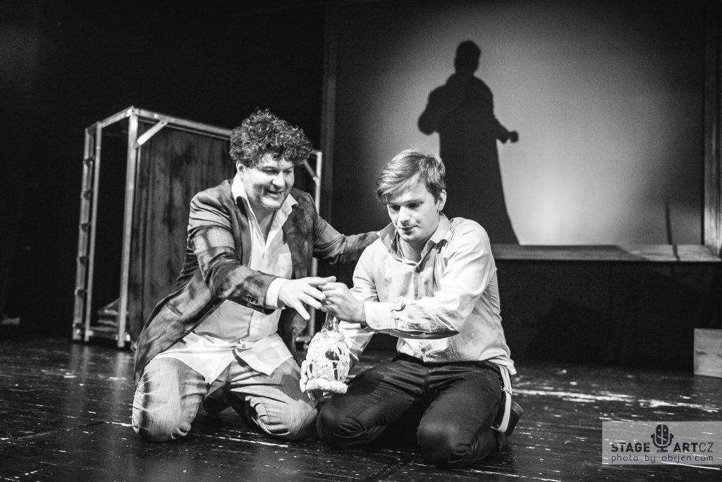 Scéna je velmi pestrým způsobem variovaná – vedle běžných výstupů se přes projektor promítají filmové dotáčky (Bolek Polívka, Milan Šteindler, Jan Čenský, Radim Fiala), na scéně je po celou dobu DJ jako „tichý“ svědek událostí Používáme stínohru, 3D animaci a další divadelní efekty. Za zmínku stojí také fakt, že podobně jako v divadle Shakespearovy doby hrají i ženské role výhradně mužští herci, v našem případě z Národního divadla Brno a dalších.